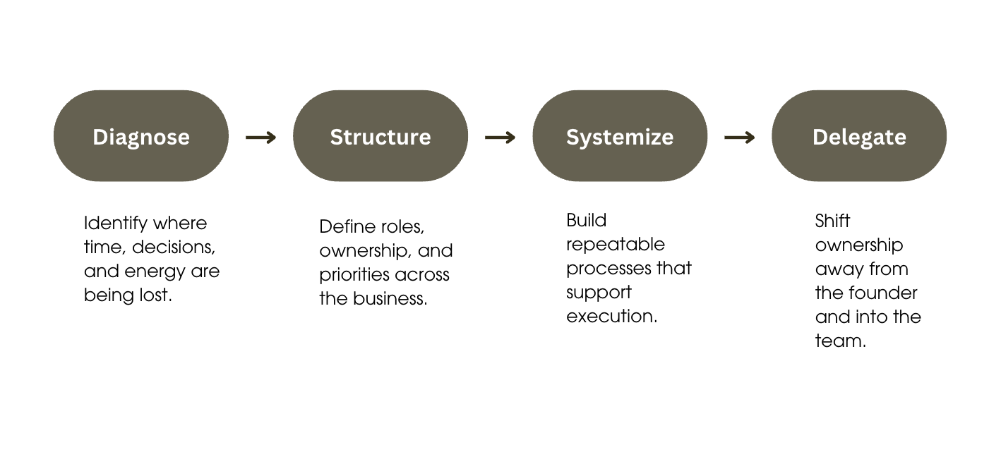 Fix how the business runs—so it no longer depends on the founder for everything.